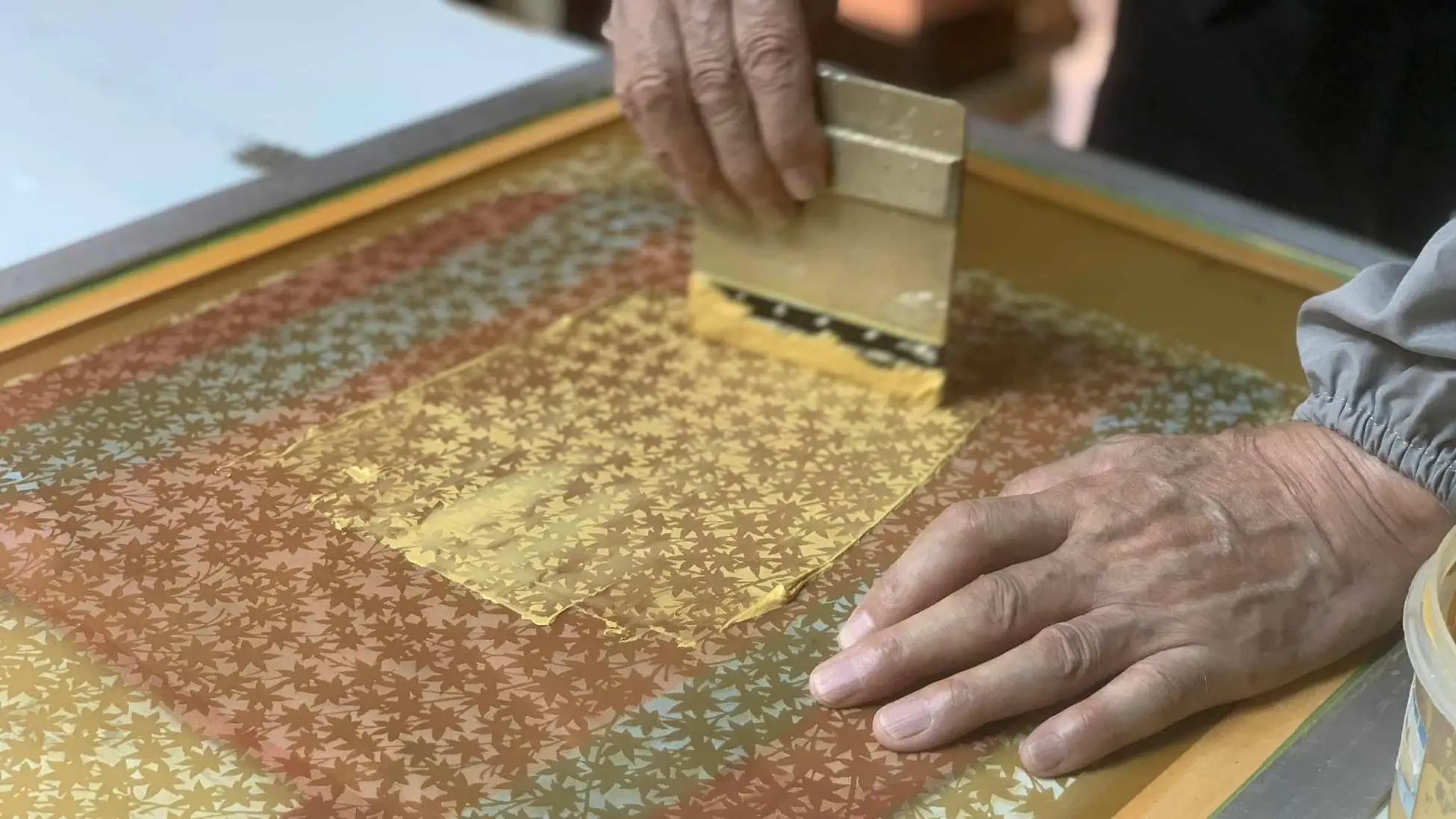体験料(バック付き):税込 ¥6,600 伝統の型染め/金彩の技法をベースに、自分だけのオリジナルトートバッグを仕上げます。 京都・岡崎の工房ならではの“和×モダン”な一枚をお持ち帰りいただけます。
